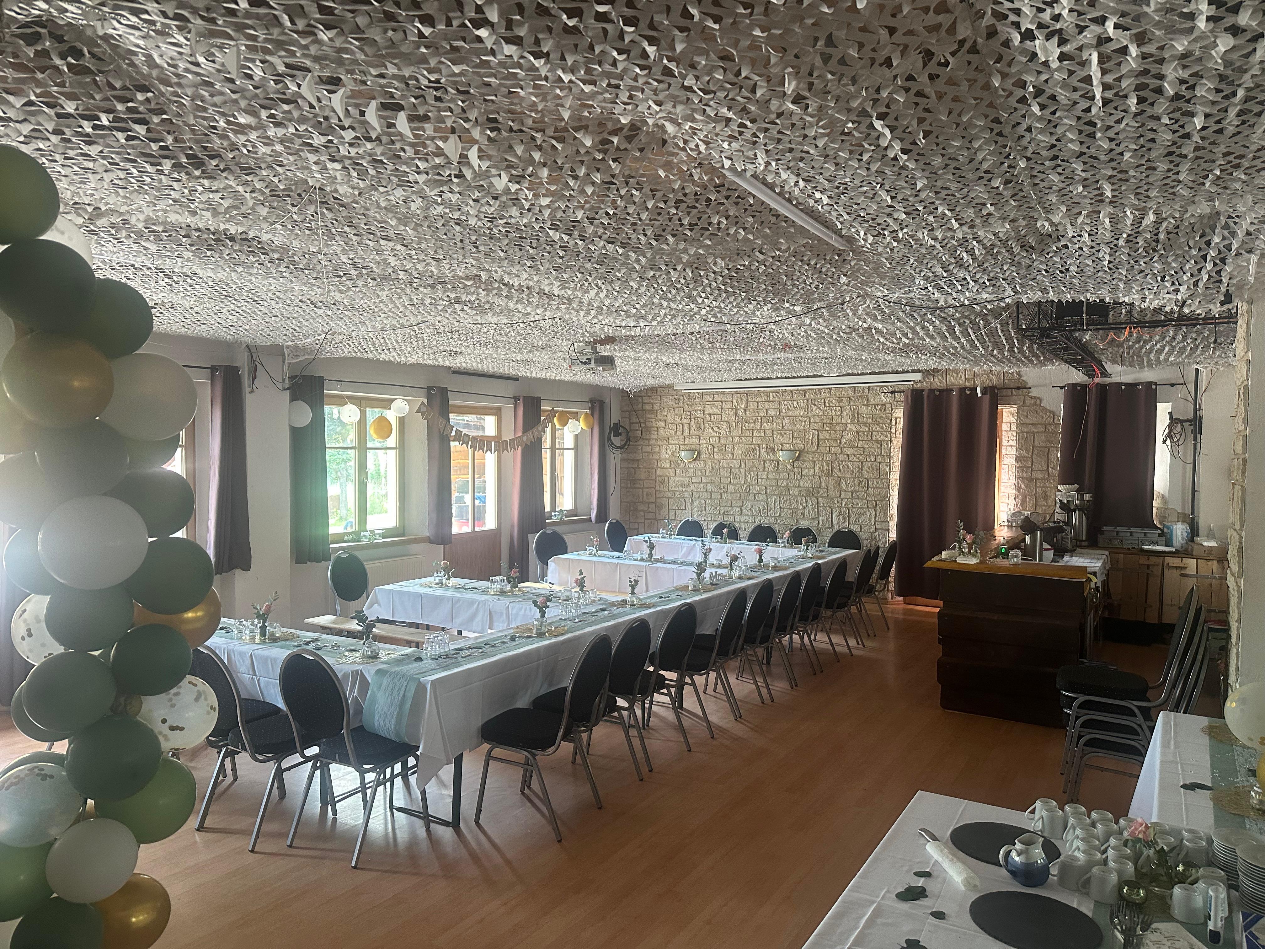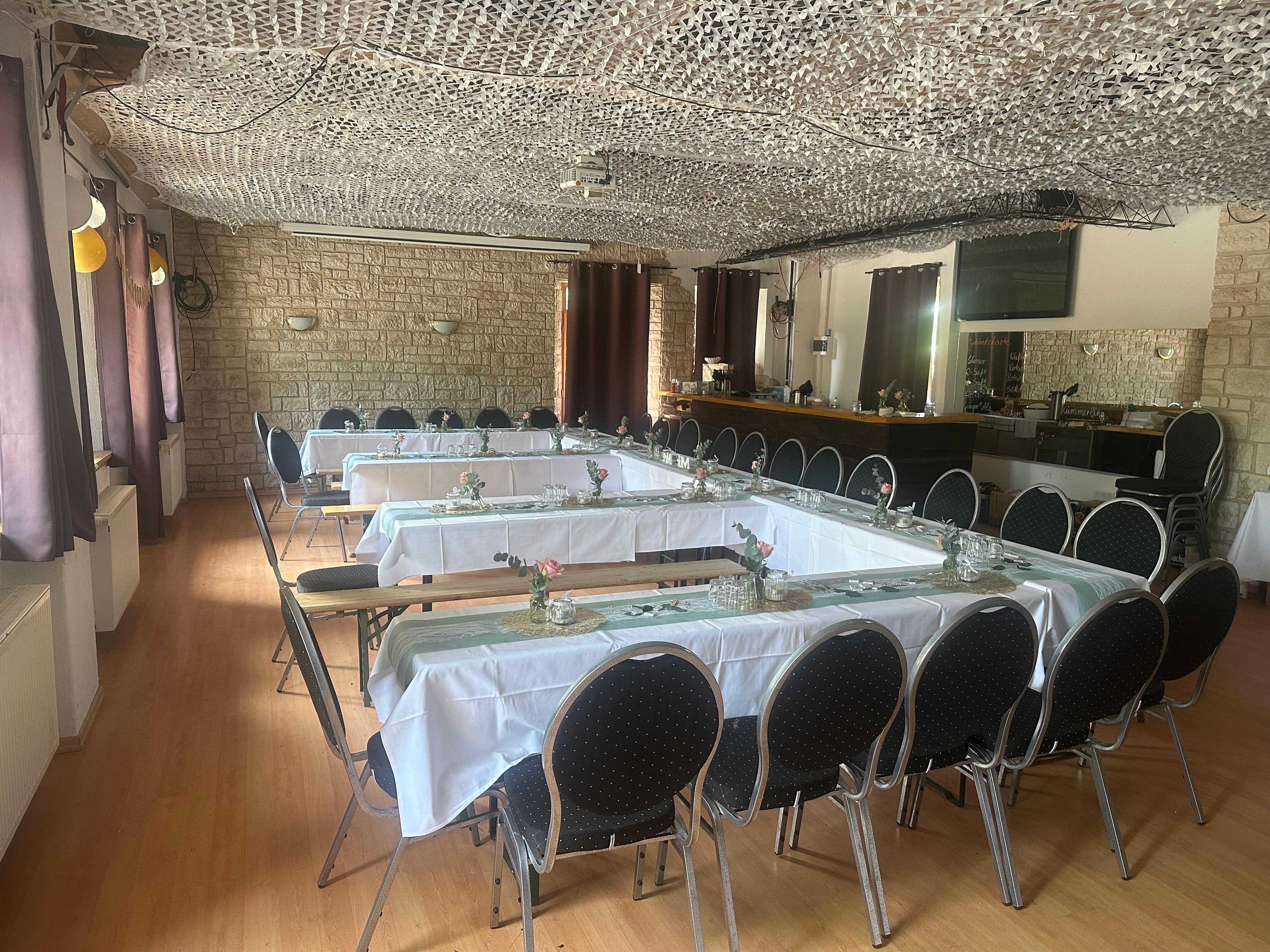 Platz für bis zu 50 Gäste im Saal und 100 Gäste inkl. Biergarten (Sitz- oder Stehplätze möglich)